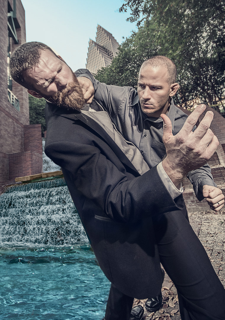 The series features Houston-based martial arts experts and stunt men coming together to create an action-packed shoot in downtown Houston. I wanted to highlight the skills of these amazing athletes but push the concept of a fitness shoot to a whole new level with a fashion infusion. The series was all about power, movement and story which come together to create the most iconic photography.